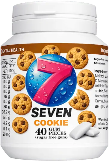 Seven Gum Cookie is the world's first cookie-flavored sugar-free chewing gum — a 40-piece bottle of bold, buttery cookie taste designed for people battling sweet cravings. It's ideal for intermittent fasters, keto dieters, office workers fighting 3pm sugar crashes, and anyone who wants the flavor of a cookie without the 150 calories. Zero sugar, just 5 calories per piece.